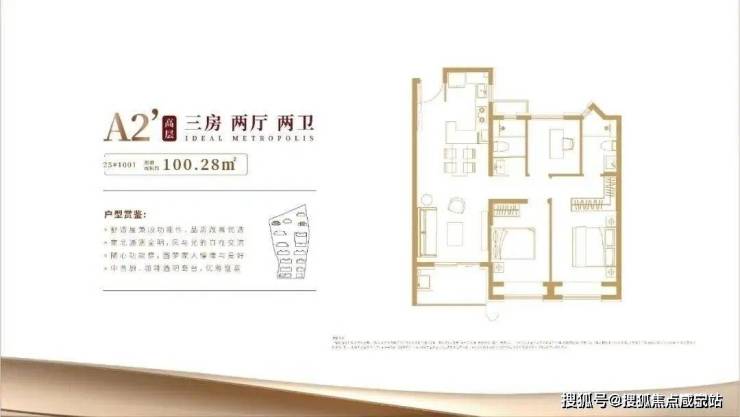 项目主力高层户型皆是建面约100㎡3房2厅2卫,室内布局大致相似,是功能性和尺度感完美结合的明星户型。