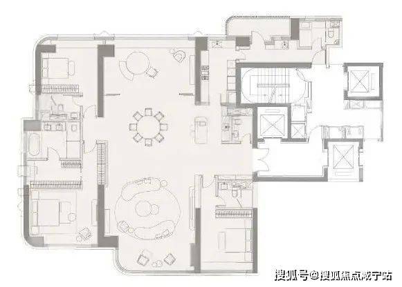 更难得的是,户型方面,打造出了市场中难得一见的无敌方正大平层!