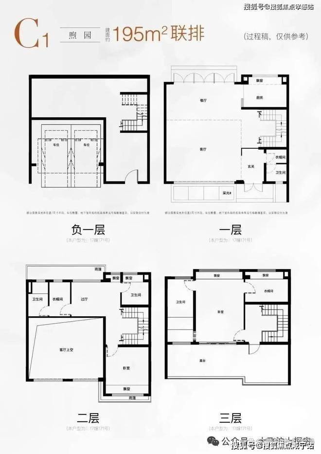 建面约195㎡的C1户型,尺度更加惊人,墅居体验堪称“庄园式”!