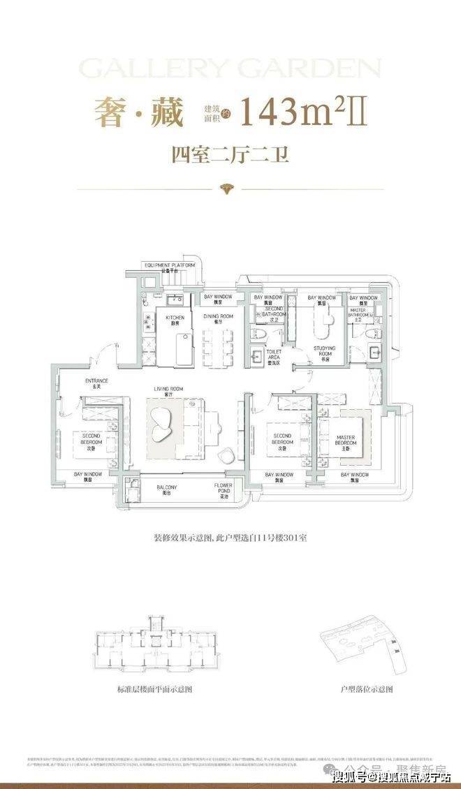 罕见七飘窗设置,主卧还是约270°转角飘窗,可多角度欣赏景观,同时大大增加室内使用面积,据悉七飘窗合计约12平米。