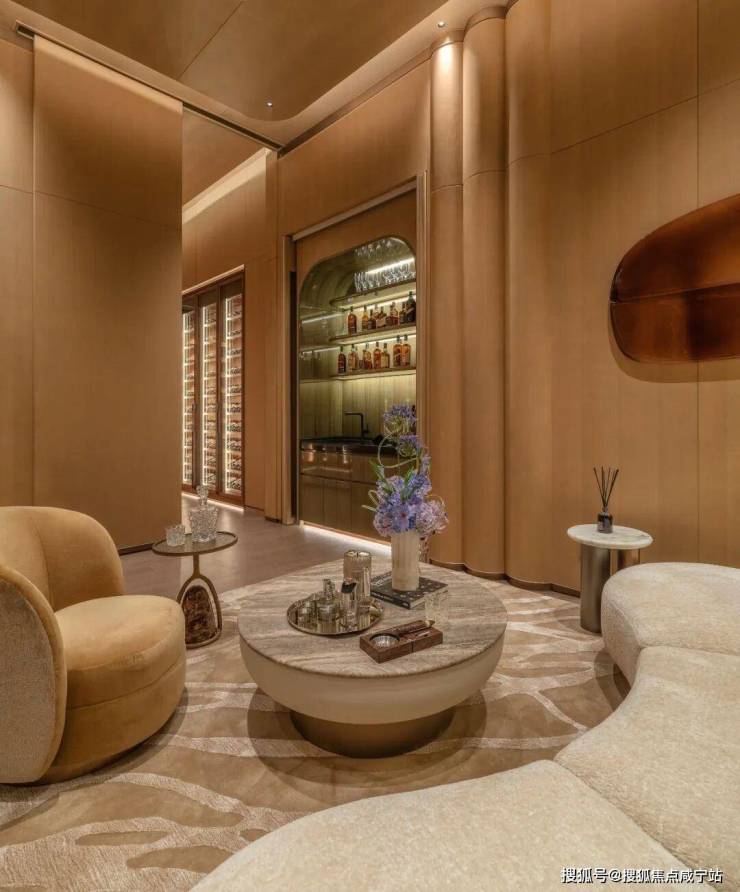 在中庭的两侧,雅致在社交与休憩空间中亦得以延展。茶室与宴会厅的并置,实现了生活场景的优雅切换,而红酒雪茄吧则构筑了一处兼顾私密与互动的品味据点。空间流线双向可达,确保社交的从容与自由;典雅的材质、深邃的色调与柔和光感营造出内敛氛围,让每一次品鉴都成为与宁静的深度对话。