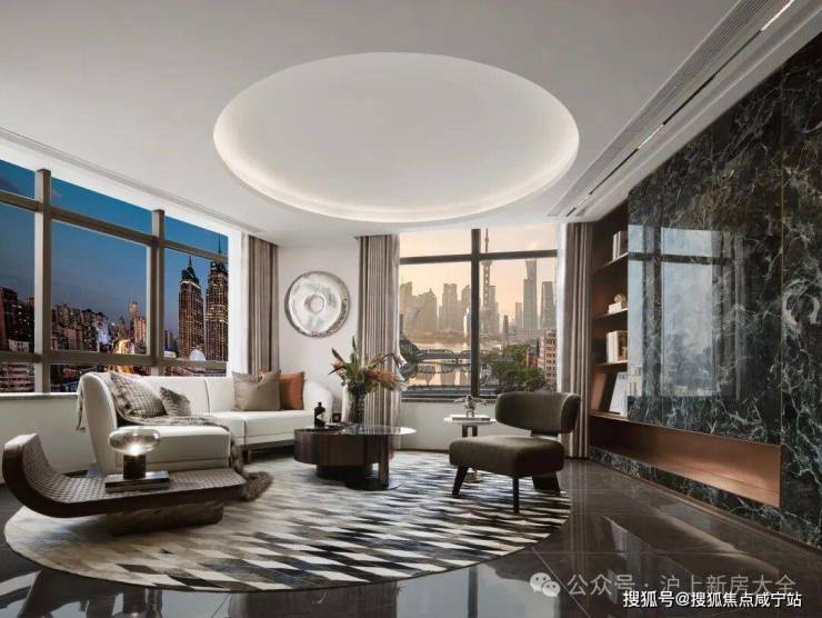 客厅转交采光面,配置弧形沙发,窗前望去上海三件套尽收眼底;