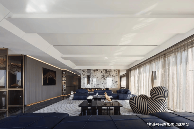 装修上,将时尚与奢华巧妙融入每个角落,所有的窗帘、移门、提升窗、灯光、空调、新风、地暖都可以通过手机远程控制。