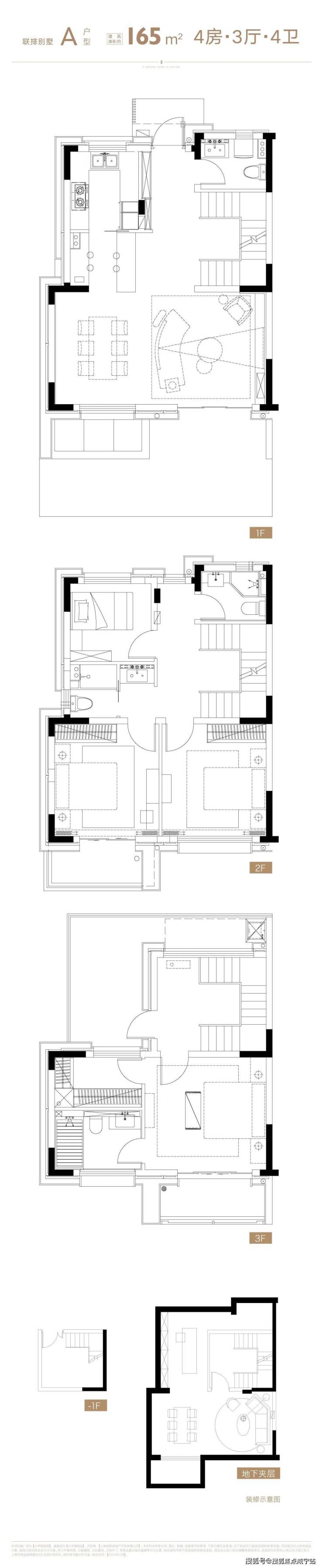 四连排的别墅含有地下室B1,B2直达车库。