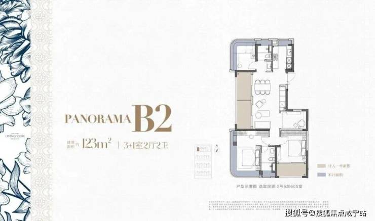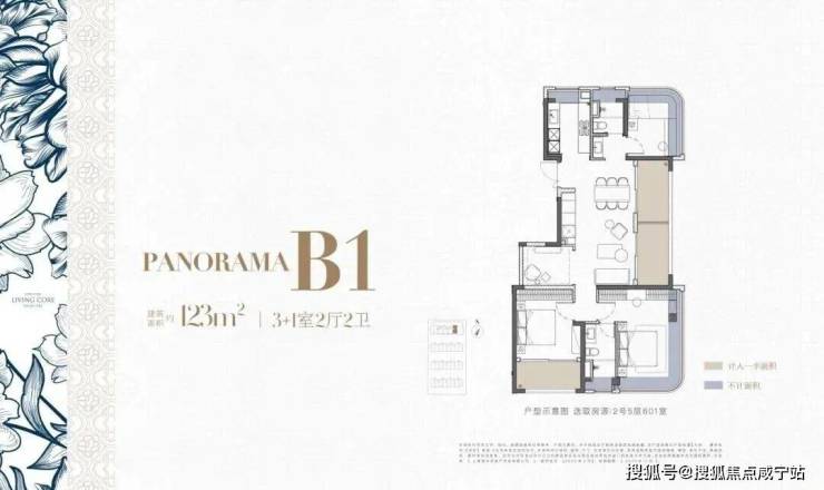 高层住宅主力户型为建面约108㎡三房和123㎡四房两种: