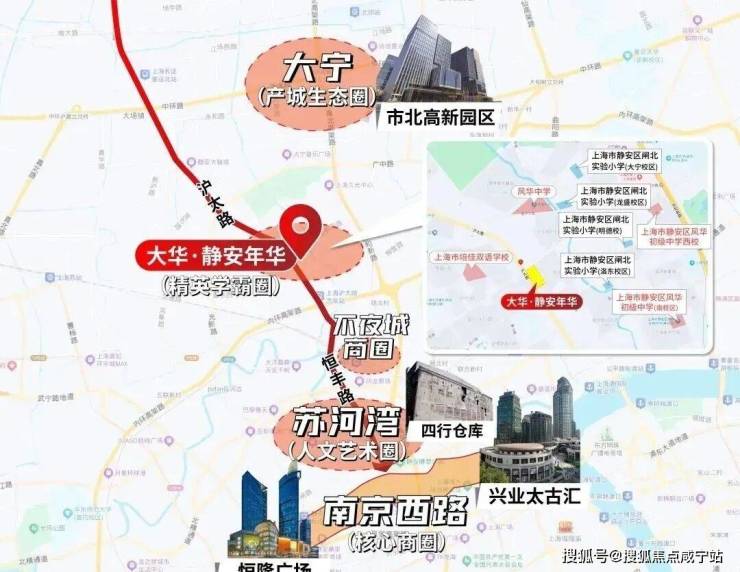 大华静安年华落子于静安区大宁板块,具体位置在沪太路与延长路交汇处。这里被称为大宁“黄金C位”,不仅因为它紧邻内环(直线距离内环高架约800米),更因为它处于新老静安的交汇轴线上。