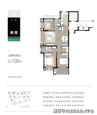 100㎡三房:动静分区明确,U型厨房+双卫设计,适合首改家庭。