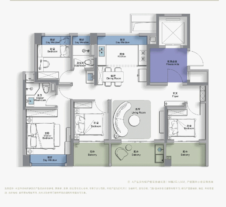 尺度感上:这是新政后松江板块首个四开间朝南、且不封阳台的三阳台户型。