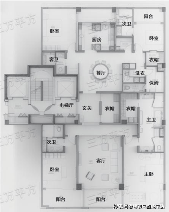 与G9 249㎡户型同属一个核心筒,其实也算镜像户型。