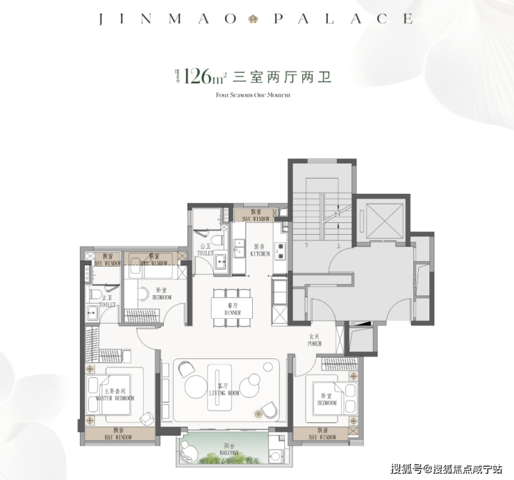 126㎡户型,三开间大尺度南向面宽,搭配大尺度窗墙比,尽纳无限光感视野;南向横厅设计,更多空间想象,独享开阔视野,为日常增添更多采光与优越居感;独立玄关、步入式衣帽间方便日常出入和收纳。