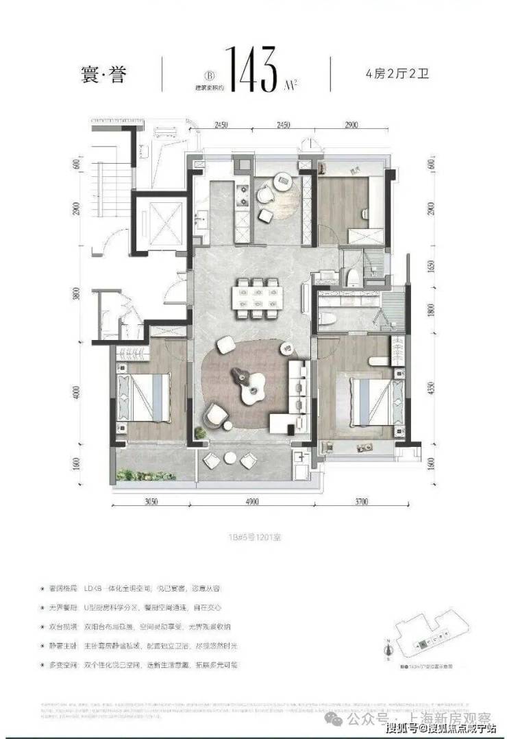 建面约143㎡4房样板间展示如下