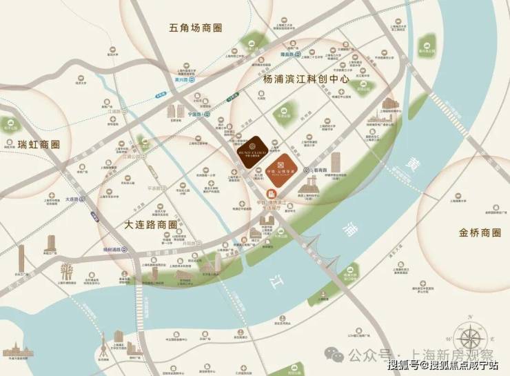 项目的稀缺价值更体现在核心配套上:距离黄浦江直线距离仅700米,步行约7分钟可达滨江步道且临近杨浦滨江工业遗存路线,百年龙门吊、杨树浦水厂红砖建筑等景观近在咫尺,实现“江景+工业历史景观”的双重享有。