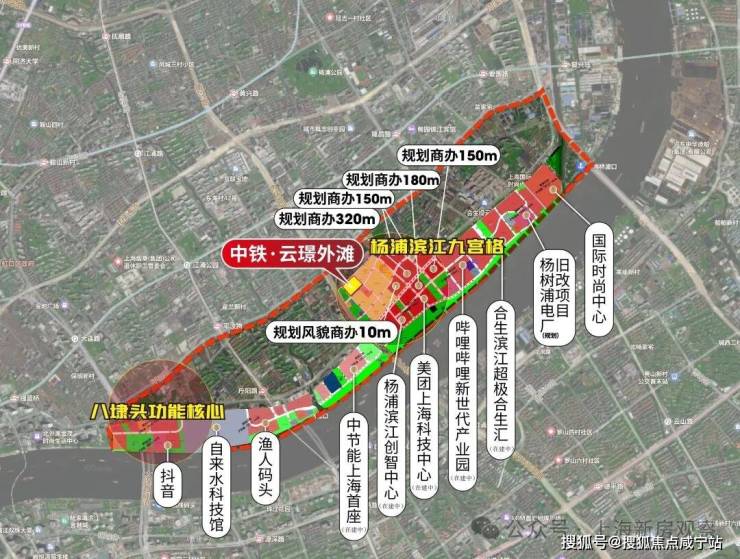 块属于杨浦滨江“九宫格”之一,紧邻内环高架、12号线宁国路站,直线距离滨江约700米。地块北面是一所九年一贯制学校,南侧是中建壹品·外滩元境;周边还有已经售罄的海玥外滩序BUND98、中建壹品·浦江之星项目。