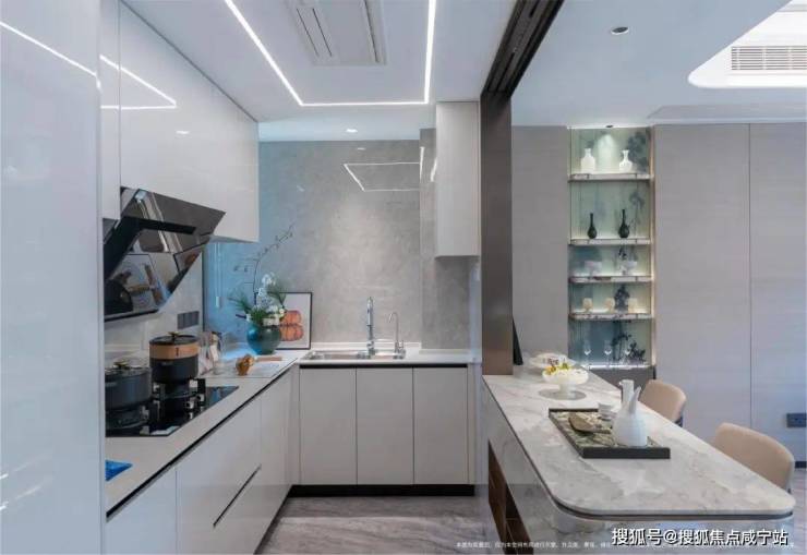 厨房配备方太(或同等品牌)手扫感应油烟机、灶台、洗碗机三件套,水龙头及水槽则采用一线摩恩(或同等品牌),配置末端净水系统;