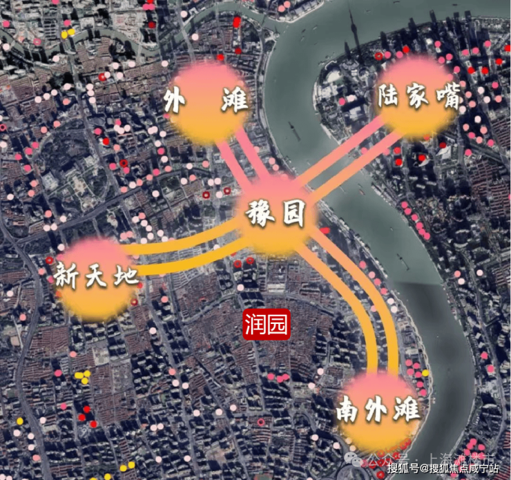 向西可连接新天地的潮流文艺,向北贯通大豫园的文化升级,向东衔接外滩的金融封面,向南则是串联起来的黄浦滨江豪宅带,淮海中路、陆家嘴、人民广场等城市地标繁华环伺