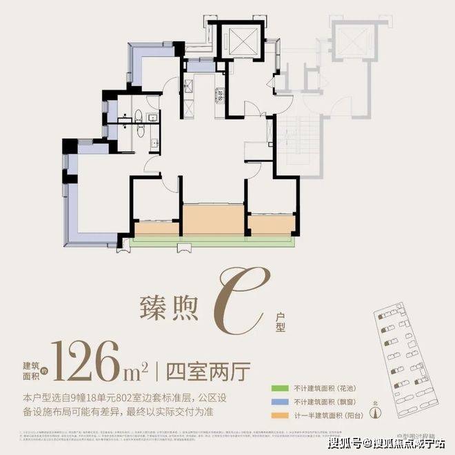 约126㎡4房:四开间朝南,附赠约30㎡,西边套一线临河,可享IMAX级观河景体验,全维度契合改善家庭的居住期待。