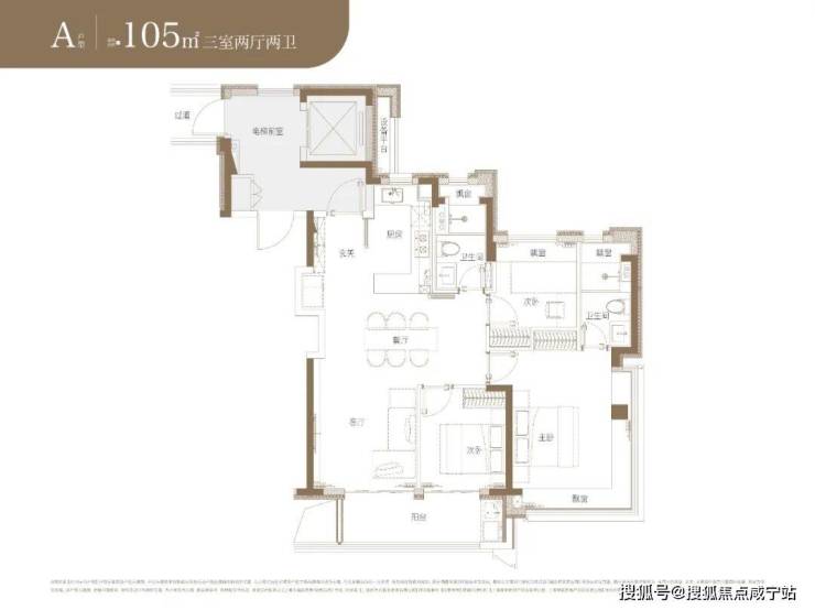 主卧都做了套房设计,边套带270°转角飘窗+卫生间,中间套带飘窗+卫生间+衣帽间,适配不同居住需求的客户。
