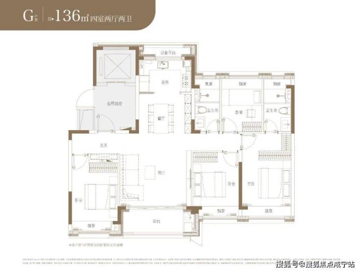 全套户型图如下,户型为建面约92-105-128-136-143㎡3-4房。