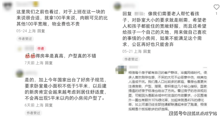 另外在社交媒体上,众多业主纷纷为项目低容积率、户型得房率、景观河道等点赞。
