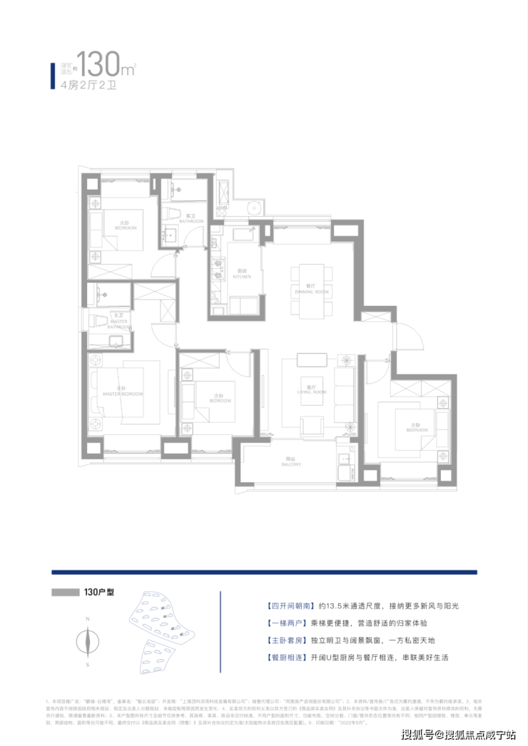 建面约130㎡四房两厅两卫