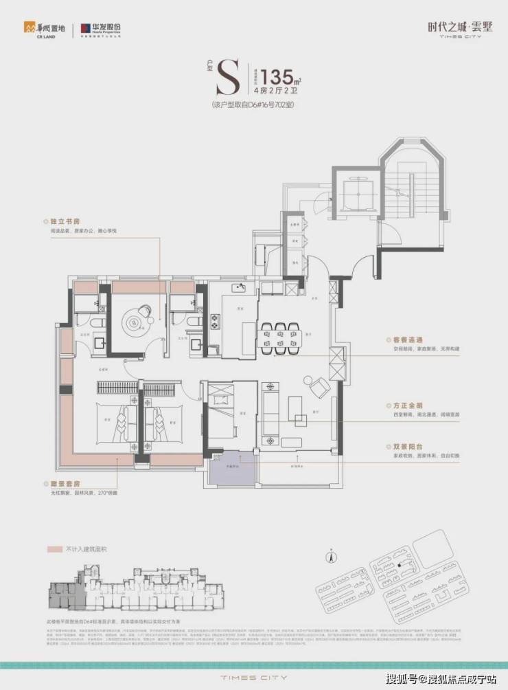 133㎡四房:四开间朝南,7.2米双联阳台,主卧270°飘窗把云翔湖晚霞框成油画,北向书房可改儿童房,满足三代同堂。
