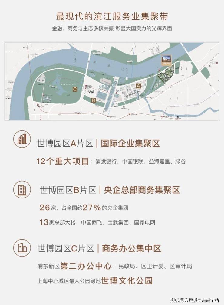 近享世界级滨江艺术带、2平方公里世博文化公园、五国金砖银行、央企总部等国际级配套。