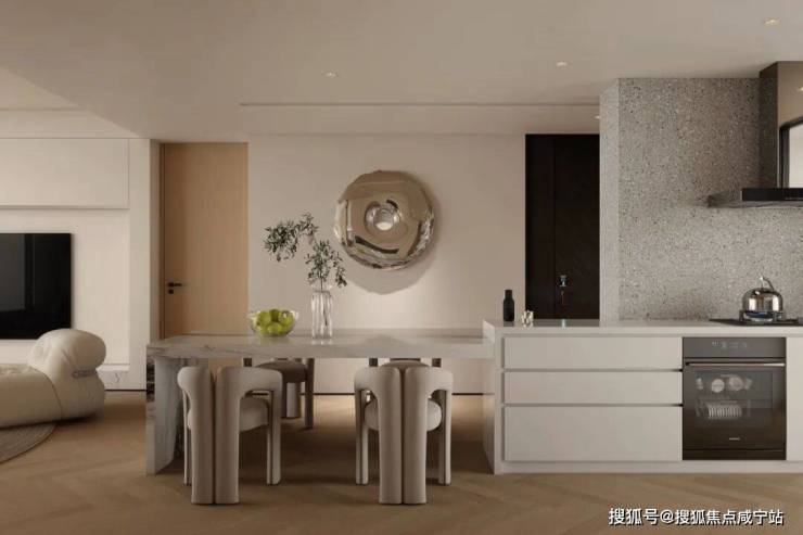 极为亮眼的是北侧的全景厨房,窗外风景尽收眼底,美食与美景的极致碰撞,至境园同频国际的奢享品味,打造更有温度的生活聚餐!