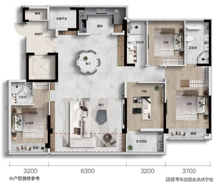 至境园这款建面约170㎡的大平层户型,实力定义什么才是“无短板”的神户型!