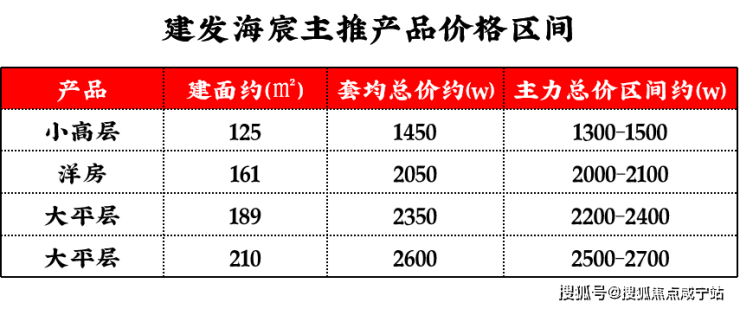 根据公示的一房一价整理,本次主推产品价格区间如下: