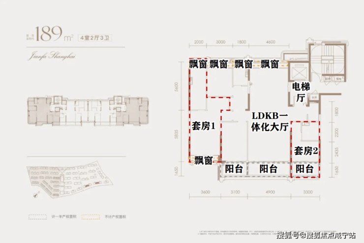 3阳台+5飘窗+独立电梯厅,超多附属面积!