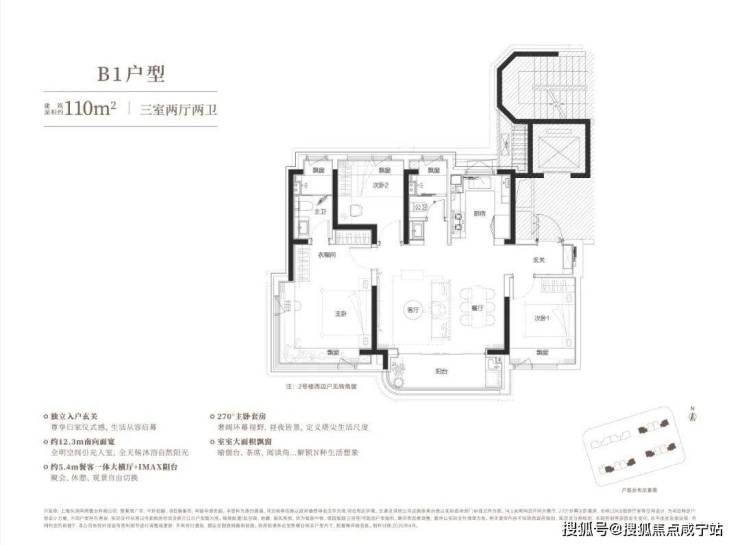 建面约110㎡3房中间套户型