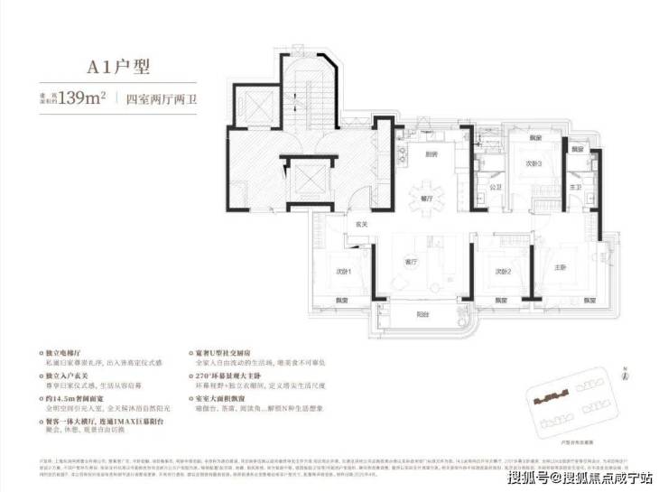 建面约139㎡4房2厅2卫户型