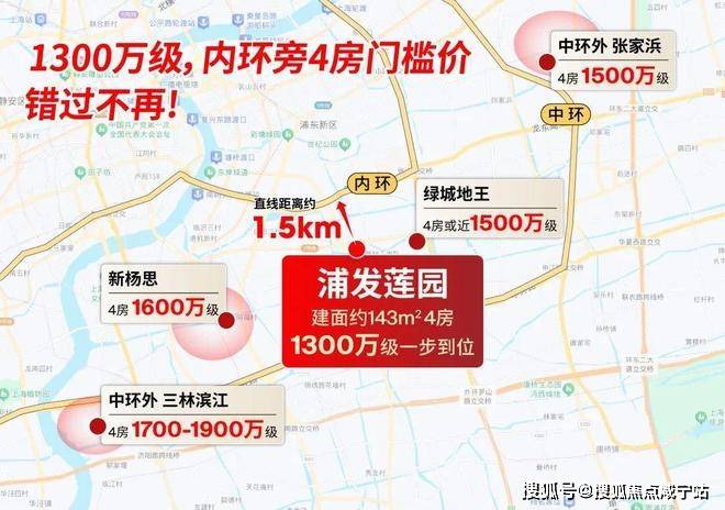 项目东侧绿城地王,4房预计近1500万级;新杨思4房1600万级;张家浜4房1500万级(中环外);三林滨江更达1700-1900万。