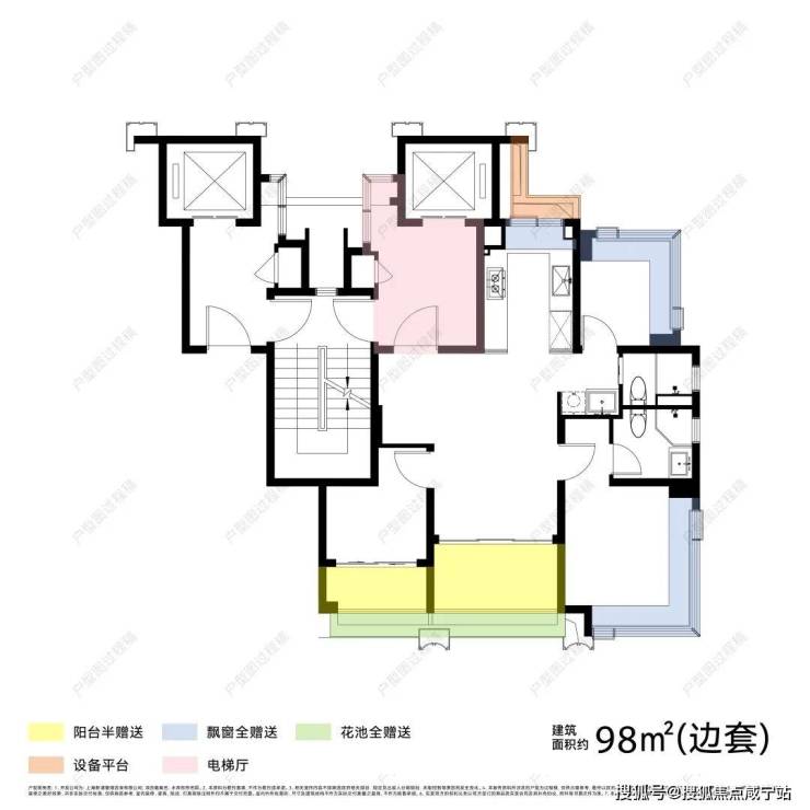 无连廊设计,更值得一提的是,无论面积大小,即使是98㎡户型,都真正做到了一梯一户。