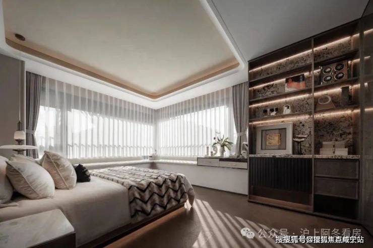 在传统的四房领域,2房朝北几乎是逃不掉的问题,但在招商中旅·观境,做到了三间卧室朝南,并且主卧拥有一个约270度的主卧无柱转角飘窗。
