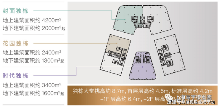 单层净高:地上1层4.5米(大堂8.7米),2-5层4.2米