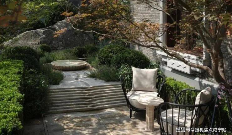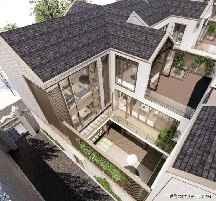 从庭园看向别墅,保留的老山墙、砖楣和门头,再加上悬挑阳台和层层露台,这种传统风貌带给人一种重见历史的感慨,又有温馨、宁静的现代舒适感。