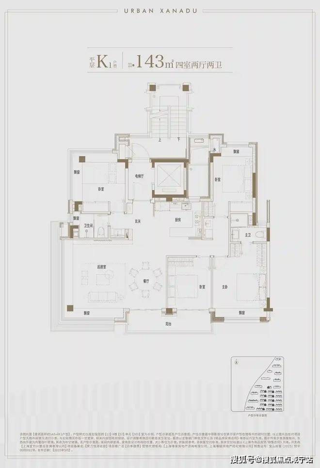 建面约139上叠户型,三层是会客区,四层是居住区,阳台+露台+多个飘窗设计,附加空间非常大,在别墅类产品中实属罕见!