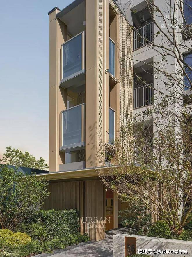 浅香槟金铝板点缀横向金属线条,搭配更多的玻璃窗面和玻璃栏板,在阳光下呈银灰光泽,夕阳映照下更加漂亮。