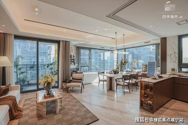 边套的餐厅、主卧和次卧,设置有多个270°全景飘窗,室内通透明亮。