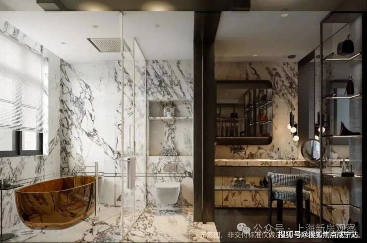 3F 主卧套房:主卧奢享,景观与私密双重升级,整层奢配衣帽间+卫浴,南向星空露台揽尽老上海夜色。