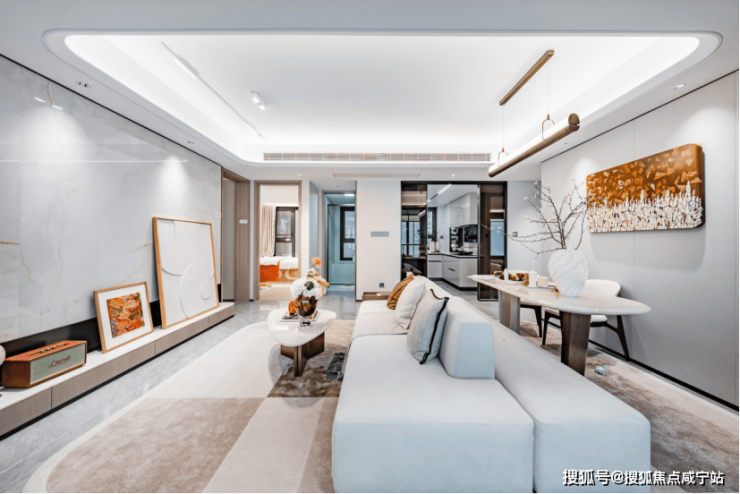 经典优雅的横厅设计,是一家人的共享公区,也是待客会友的第一空间,聚会Party轻松容纳,抬眼便是阔景阳台外的无边美景,温馨相伴的喜悦,总能让人乐在心田。