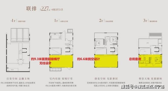 约193-227㎡联排别墅3重垂直内庭院+约36㎡外庭院+挑空大横厅+双层挑高地下室,这不仅仅是超高得房率,更是有天有地的终极生活形态。总价仅需900万起即可拥有,相当于均价约4.8万/㎡!