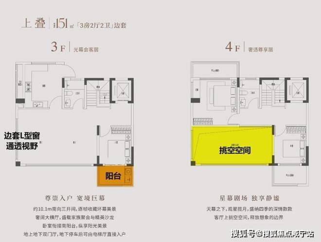 其一,区域内首个“客厅挑空”叠墅产品。