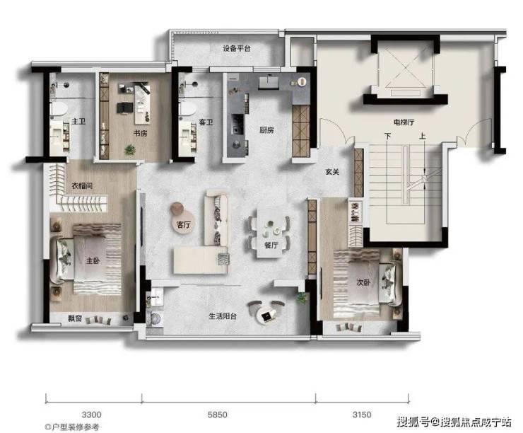 而这款建面约128㎡的高层户型,尺度感堪比建面约150㎡的大平层!
