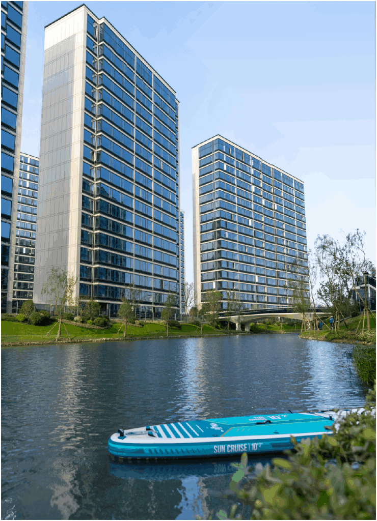 小区绿化率高达30%,整体容积率2.00,规划有中心景观花园、休闲步道、绿植花卉等,打造出舒适宜人的居住环境。项目最大亮点是被自然水系贯穿,拥有约10000平方米私家湖境和600米滨水景观步道,景观资源丰富。小区还配备酒店式落客区、跌水景观、游艇式双层景观台等精致公区设计,营造出度假般的居住体验。项目实行人车分流,保障行人安全和景观完整性,配备地下停车场、充电桩等设施。