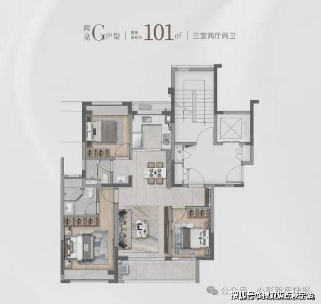 建面约101㎡的F和G户型都是市面上备受认可的飞机经典款户型。