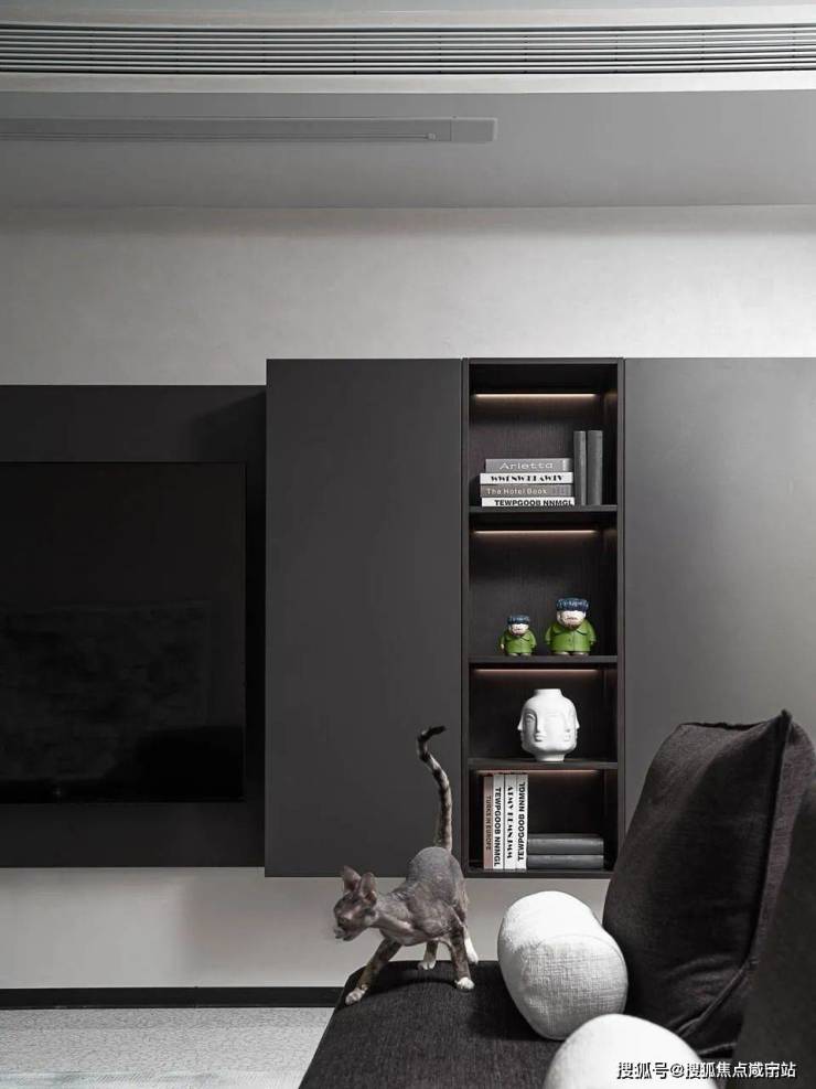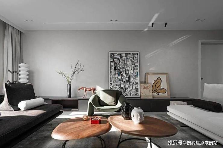 视线缓缓挪入客厅,整个空间没有任何隔断,大敞开面的格局为设计铺垫了绝美的底色,成为最有力的背景。房主为一对年轻的情侣,他们对于整体的设计有着极为明确的要求:极简与艺术共存的高级感,个性与品质并行的舒适感。