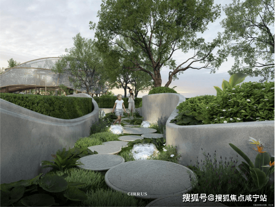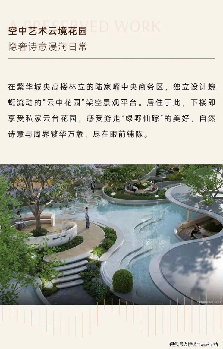 项目以“云台” 设计+TOD复合开发,打破传统老豪宅的时代局限。楼下是无缝衔接地铁的漫步式商业街,据传商业由晶耀前滩、前滩公园巷商管团队打造,主打精致、潮流与艺术氛围,让高端生活充满烟火气;通过专属垂直动线拾阶而上,则进入约12000㎡云台静谧空间(仅是住宅业主的私享面积),戏水池、儿童玩乐区与林间秘境层层铺展。