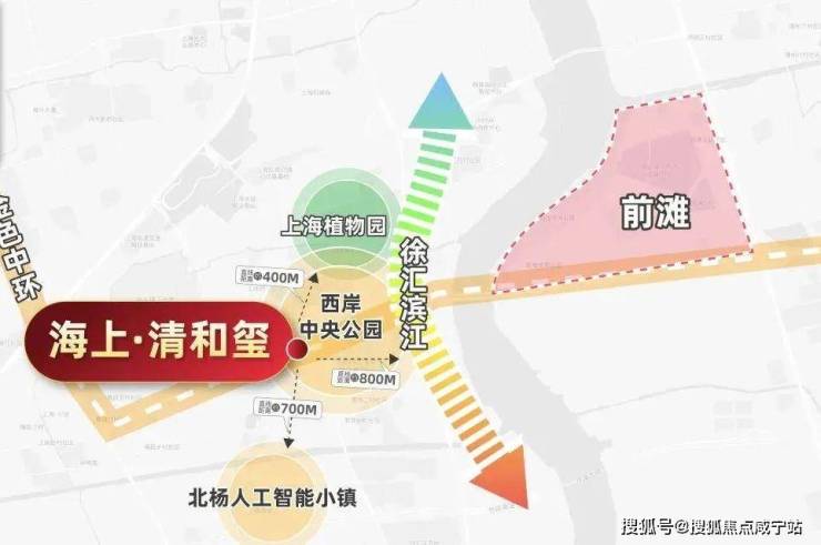 从地段来看,海上·清和玺紧邻徐汇中环,直线距离徐汇滨江约800多米,直线距离北杨人工智能小镇约700多米,直线距离上海植物园约400多米,直线距离前滩约1.7公里。